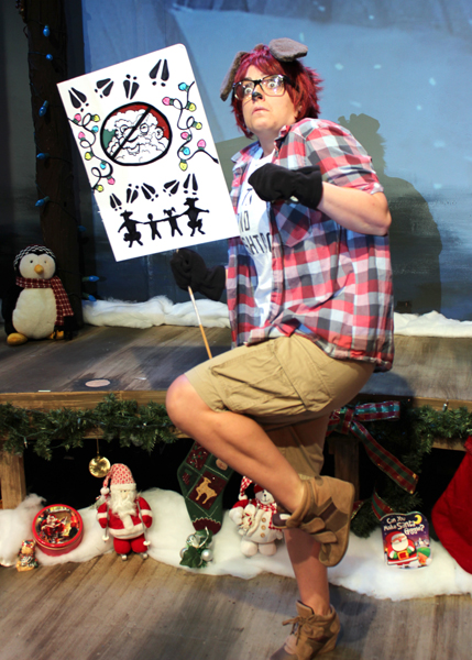 Sometimes the humor seemed a little forced to me, as this was my first viewing. I got the feeling the performers were working with shtick that was very well-practiced, especially since much of the cast have been doing this show for years. As far as that goes, since so many actors are involved this season, there will be a different cast for every performance, including men playing the female roles and vice versa. For the show I saw, standouts included Casey Long as the chest-thumping Dasher, Jocelyn A. Brown in her best brogue making Blitzen proud, Karen Jean Olds as the hysterically nervous Dancer, Richard Comeau as the forlorn Donner, and Camryn Zelinger as a very sexy and funny Vixen. Needless to say, this is a very adult show. As written by Jeff Goode and updated annually by the cast with countless contemporary references, the themes and gags are mostly sexually perverse, but also built out of very human foibles. It’s confusing to tell at times if we’re supposed to think of them as people, reindeer, or some mish-mash of both.