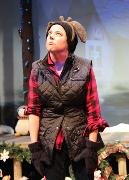 secrets you probably didn’t want to know. The actors are dressed as reindeer only in so far as they wear floppy ears and furry antlers — except for the female deer who have little antler bumps — and mittens for hooves. The remainder of their costumes reflect their personalities. And yes, they have very distinct and distinctly large personalities. Dasher is a macho hero dude; Cupid a very dear gay deer; Hollywood (or Prancer) is — as his nickname suggests — all about the image; Blitzen is a hardcore women’s rights Irish punk; Comet is a Brooklynesque street dude; Dancer is a washed up Midwestern dance instructor; Donner is an old man and Rudolph’s beleaguered dad; and lastly, Vixen is, well, a vixen, and pretty much the focus of all the trouble. You see, in the past Santa has been caught making very inappropriate sexual advances on Vixen, and everyone knows about it. And then there is Santa’s continual harassment of the elves, that is when Mrs. Claus isn’t doing naughty costume stunts with them. It seems the North Pole is in serious need of some SVU cops, or at the very least an HR office.