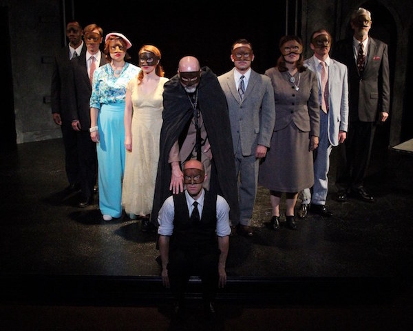 - Left to right: Ahmed Brooks (Polonius), Taylor Stephenson (Osric), Katie Canavan (Rosencrantz), Lola Kelly (Ophelia), William Crisp (Ghost), James McHale (Hamlet), Jason Evans (Laertes), Susan K. Berkompas (Gertrude), Aaron McGee (Guildenstern), Paul Eggington (Claudius)