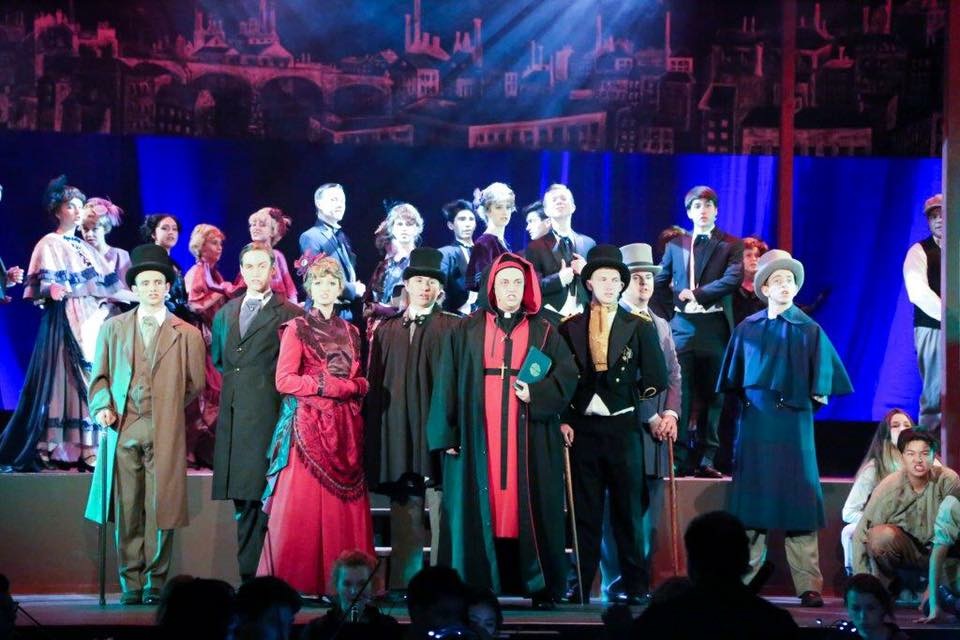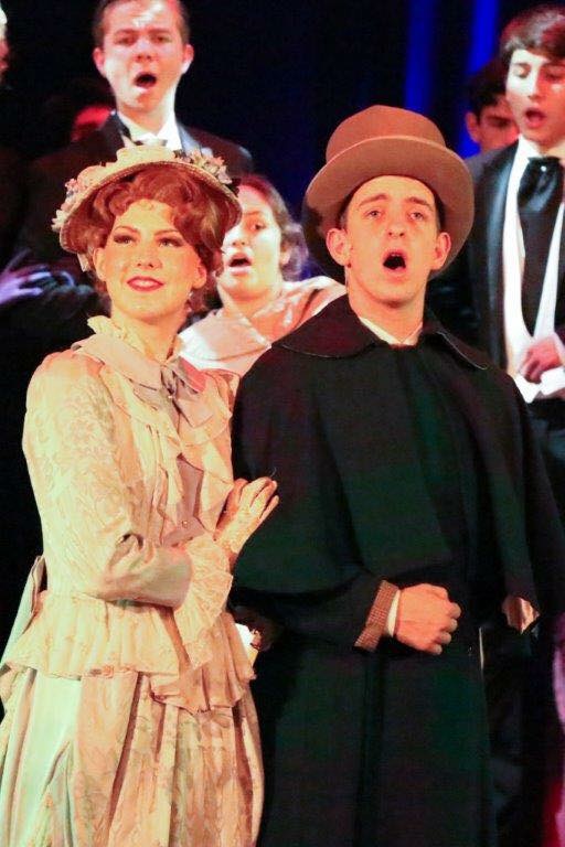 There is nothing in the world like live music, and the orchestra for this show is fantastic. They keep excellent pace with the singers, and if ever a sour note is played, it’s so infrequent that the memory of it is soon forgotten. I LOVE these musicians, and listening to such strong clear voices during the night is truly enjoyable. My main issues with the music stem from my issues with the work as a whole. Jekyll and Hyde is not my favorite musical for a few reasons –one of them being the music. There are a few too many numbers in this show that I personally don’t think are exciting to listen to. To counterbalance that something visually stimulating has to be taking place onstage. This is is a difficult mission to accomplish when one has to work with a cast as large as this production’s, so in a few of the ensemble numbers the students either milling about or stand around singing like a well-costumed chorus (and I do mean that because the costumes are beautiful here). The beauty of the cast’s voices ring true. Every soloist proves their merit; every lead is worth their salt.