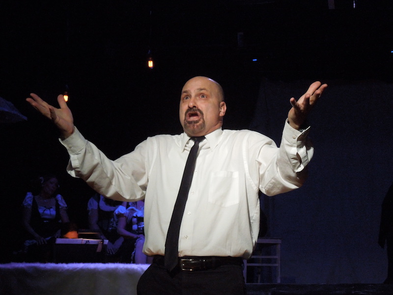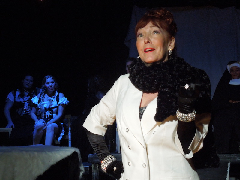 On its surface Nine is the tale of Guido Contini, a famous Italian writer, actor, and director suffering from a horrible case of writer’s block while working on his next project. It’s thought that perhaps the cause of the block stems from the number of women on his mind. There’s his wife, Luisa, (portrayed by Jennifer Pearce in her return to Costa Mesa’s little proscenium stage since playing Ruth in Blithe Spirit in 2011) who promptly tells Guido she wants a divorce. Guido is still madly in love with her, but he’s also passionately drawn to his sultry and seductive mistress Carla, a part that gives actress Rainy Terrell a chance to show off her amazing vocal talent. There’s also his muse, actress Claudia Nardi, whose elegance and refinement is captured by Araceli Applegate. Rounding out the female voices pounding through Guido’s head are his mother (played by Patty Zantos), his current producer Liliane La Fleur ( played by Rosemary London), her assistant–and Guido’s biggest critic- Stephanie Necrophorus (played by Stephanie Thomas). Two additional standout performances came from Rebecca Butkivich as Our Lady of the Spa, who stands in as a seductive narrator, and Jessica-Elisabeth playing Saraghina, the woman who taught a young Guido what it means “To Be Italian.”