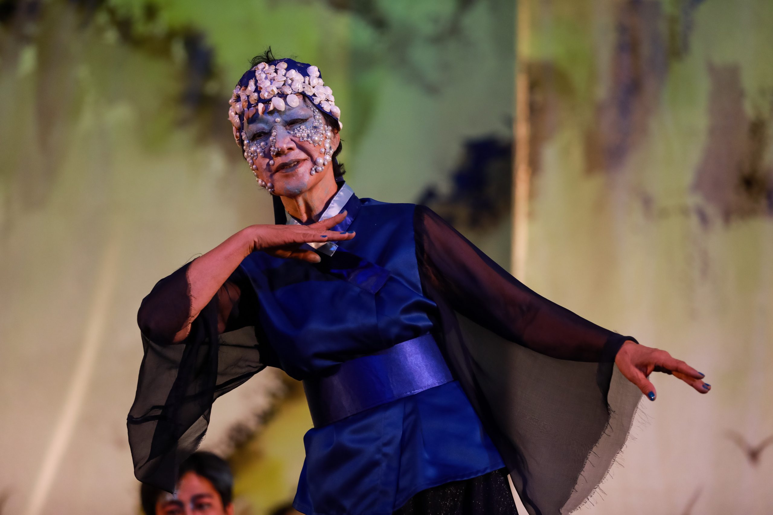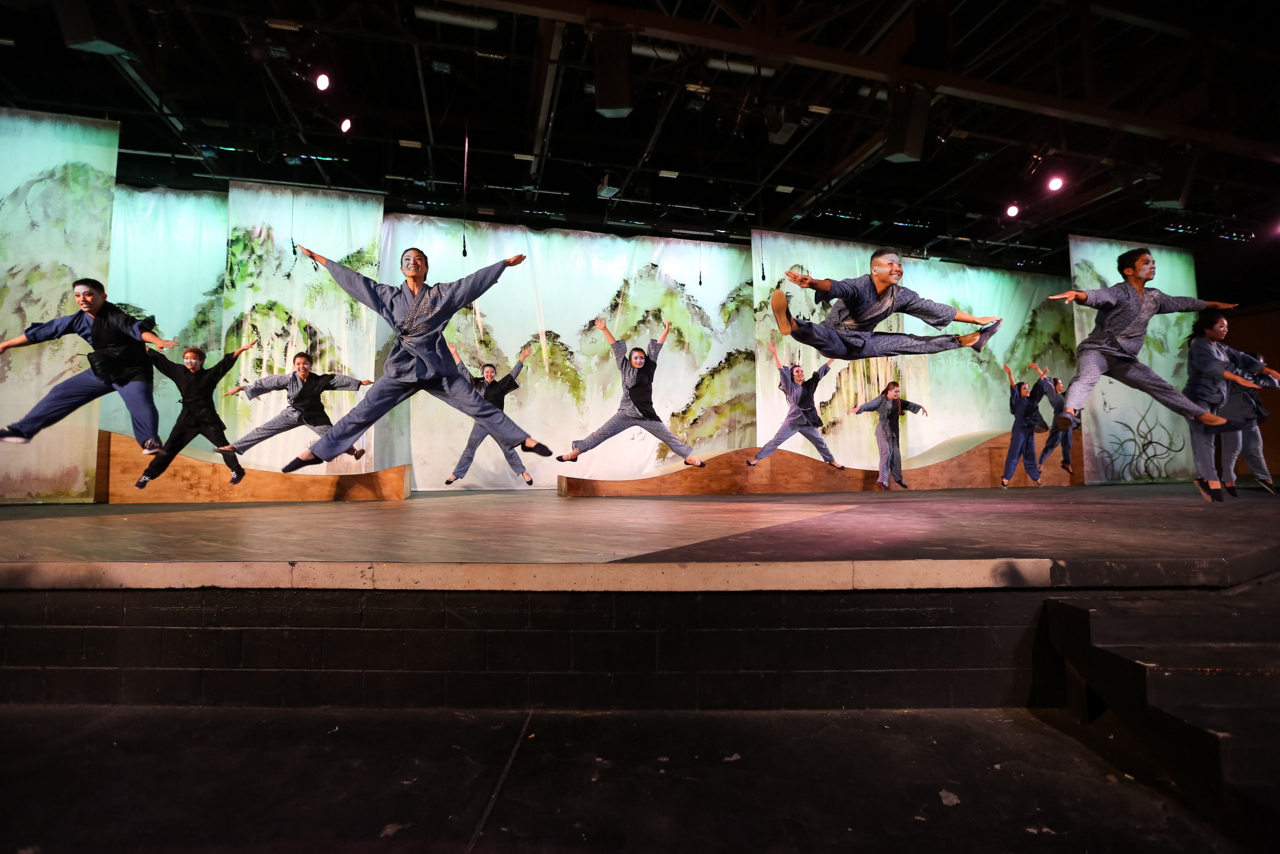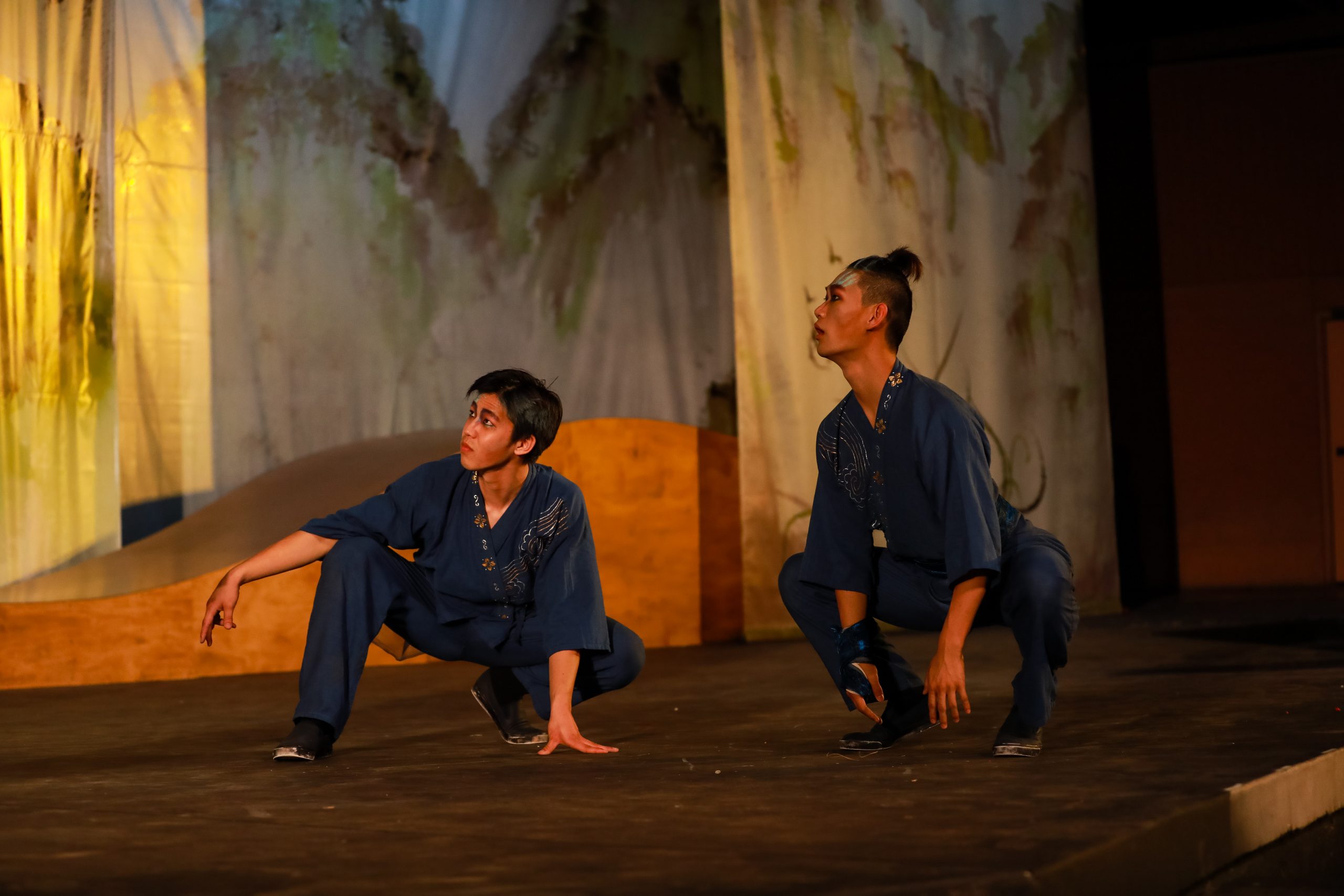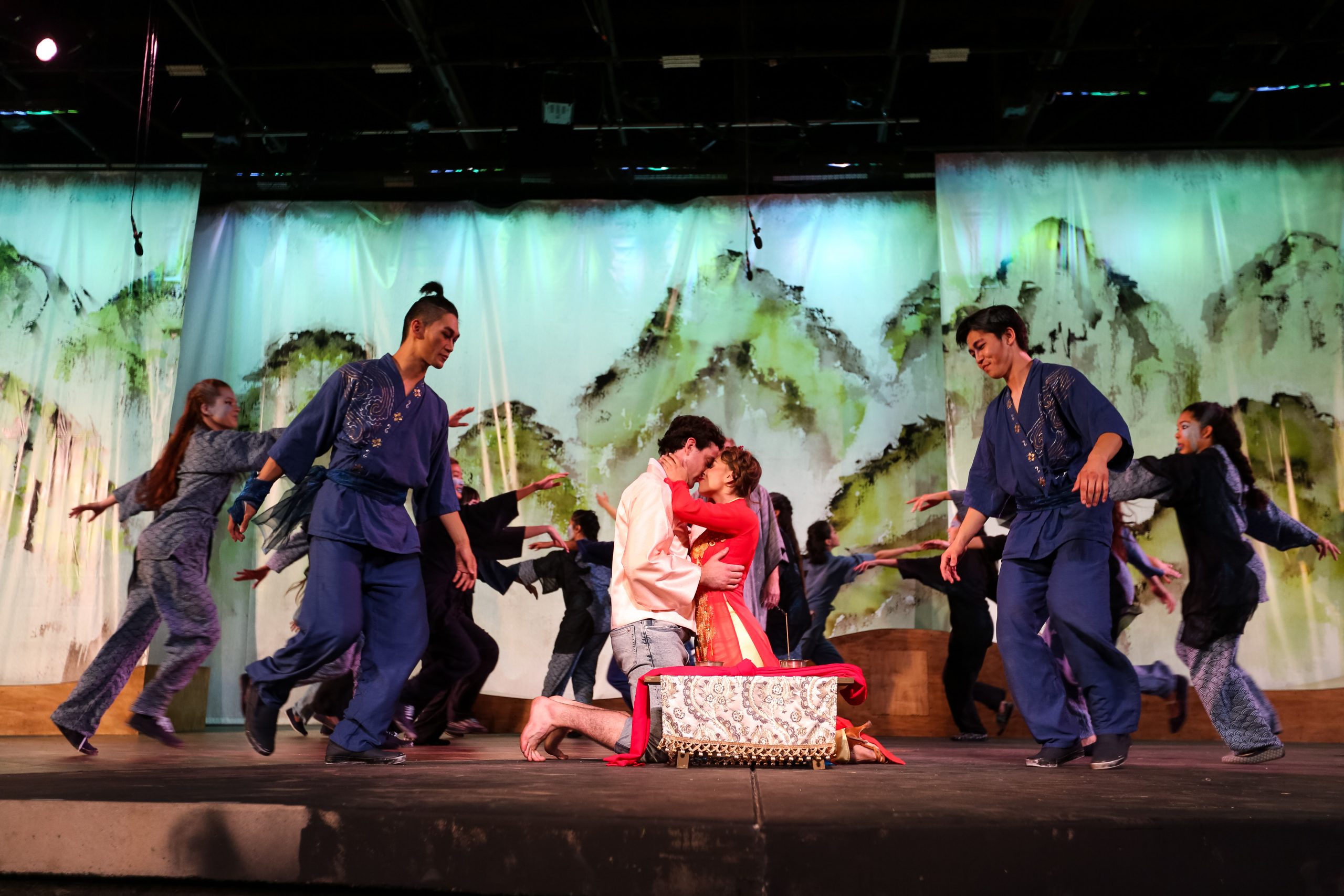 Because of Prospero’s use of sorcery, one might expect an emphasis on magic. Instead, there seems to be an emphasis on the spiritual, with the nigh-on all-powerful spirit Ariel portrayed by numerous dancers. There is also a lot of Asian influence over the infrequent musical performances in the show. When OCR reached out for details regarding the exact culture these sequences were using, we got this as a response, “The director (Peter Uribe) and producer (John Walcutt) wanted a blend of East Asian and Southeast Asian influences to give the island an otherworldly feel without being too specific. While the drumming and dance troupe is Korean, the costumes/makeup/hair of the actors were a blend of Korean, Chinese, Japanese, Vietnamese, etc., influences.” One might think that additions like the Korean drumming show during intermission is unnecessary and a nuisance –after all it is more sitting time in a Shakespeare show –but in reality it draws you in more. The bright colors, vibrant movement, and energetic drumming brings you back to the seats and eager for more island action.