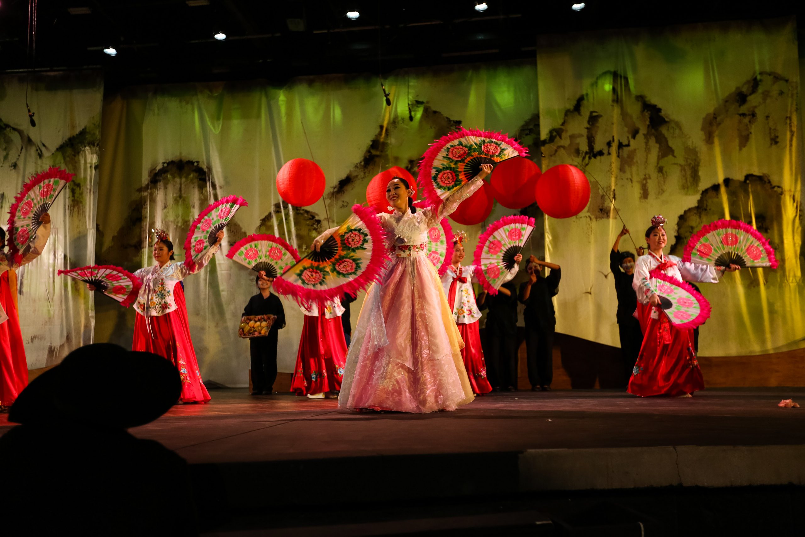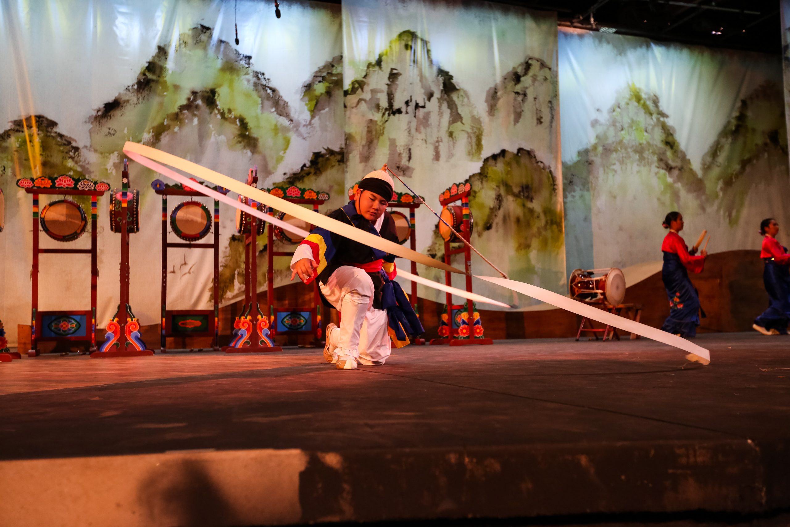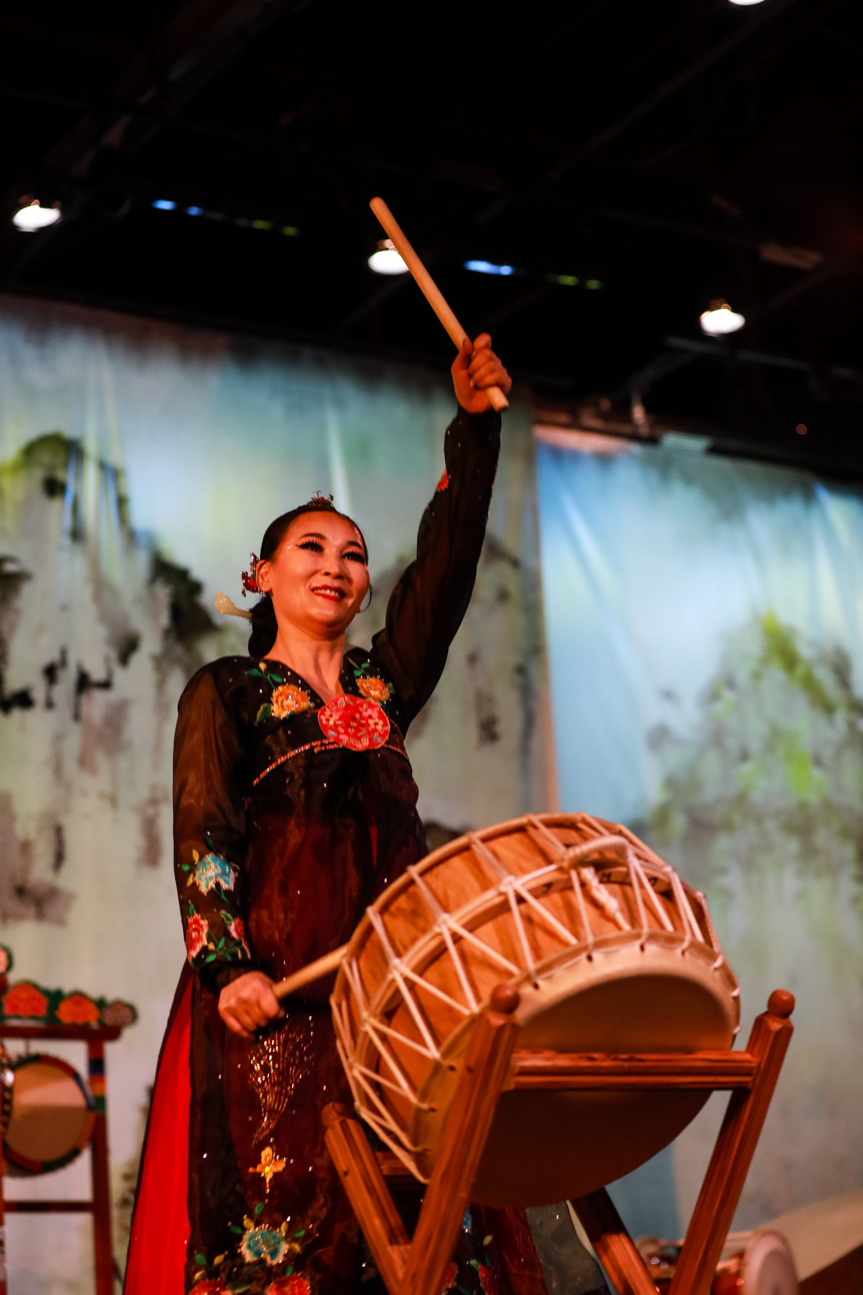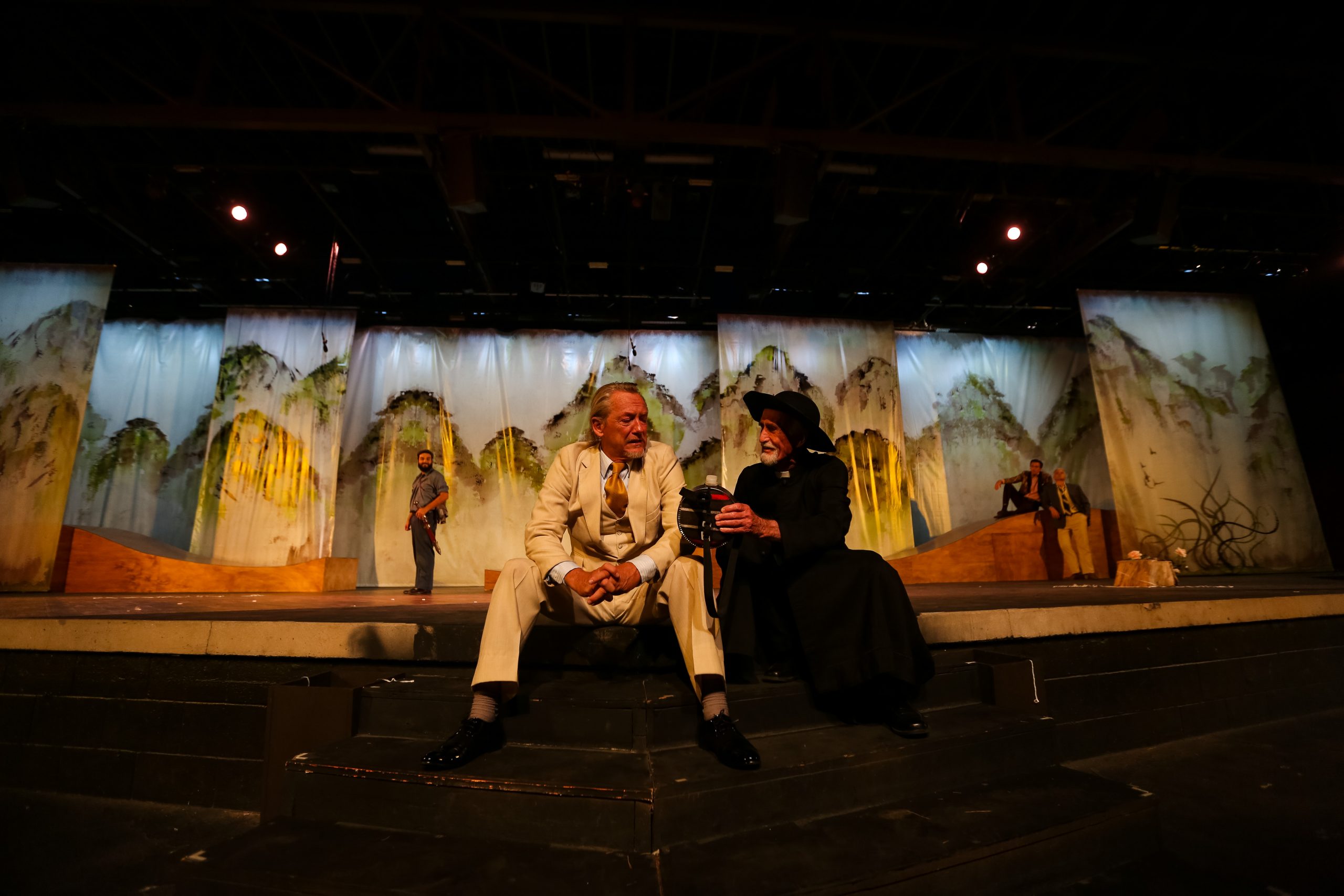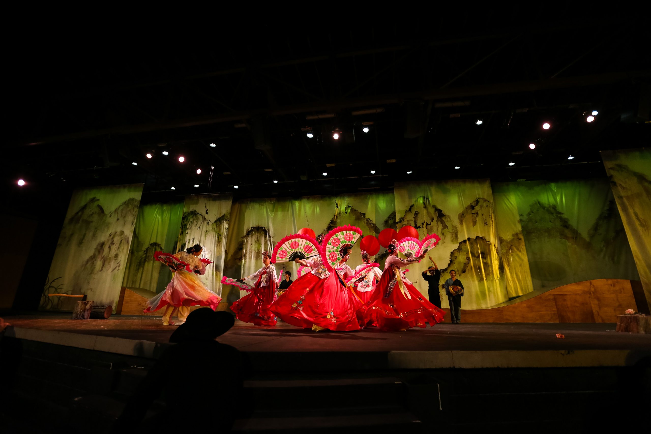 Because of Prospero’s use of sorcery, one might expect an emphasis on magic. Instead, there seems to be an emphasis on the spiritual, with the nigh-on all-powerful spirit Ariel portrayed by numerous dancers. There is also a lot of Asian influence over the infrequent musical performances in the show. When OCR reached out for details regarding the exact culture these sequences were using, we got this as a response, “The director (Peter Uribe) and producer (John Walcutt) wanted a blend of East Asian and Southeast Asian influences to give the island an otherworldly feel without being too specific. While the drumming and dance troupe is Korean, the costumes/makeup/hair of the actors were a blend of Korean, Chinese, Japanese, Vietnamese, etc., influences.” One might think that additions like the Korean drumming show during intermission is unnecessary and a nuisance –after all it is more sitting time in a Shakespeare show –but in reality it draws you in more. The bright colors, vibrant movement, and energetic drumming brings you back to the seats and eager for more island action.