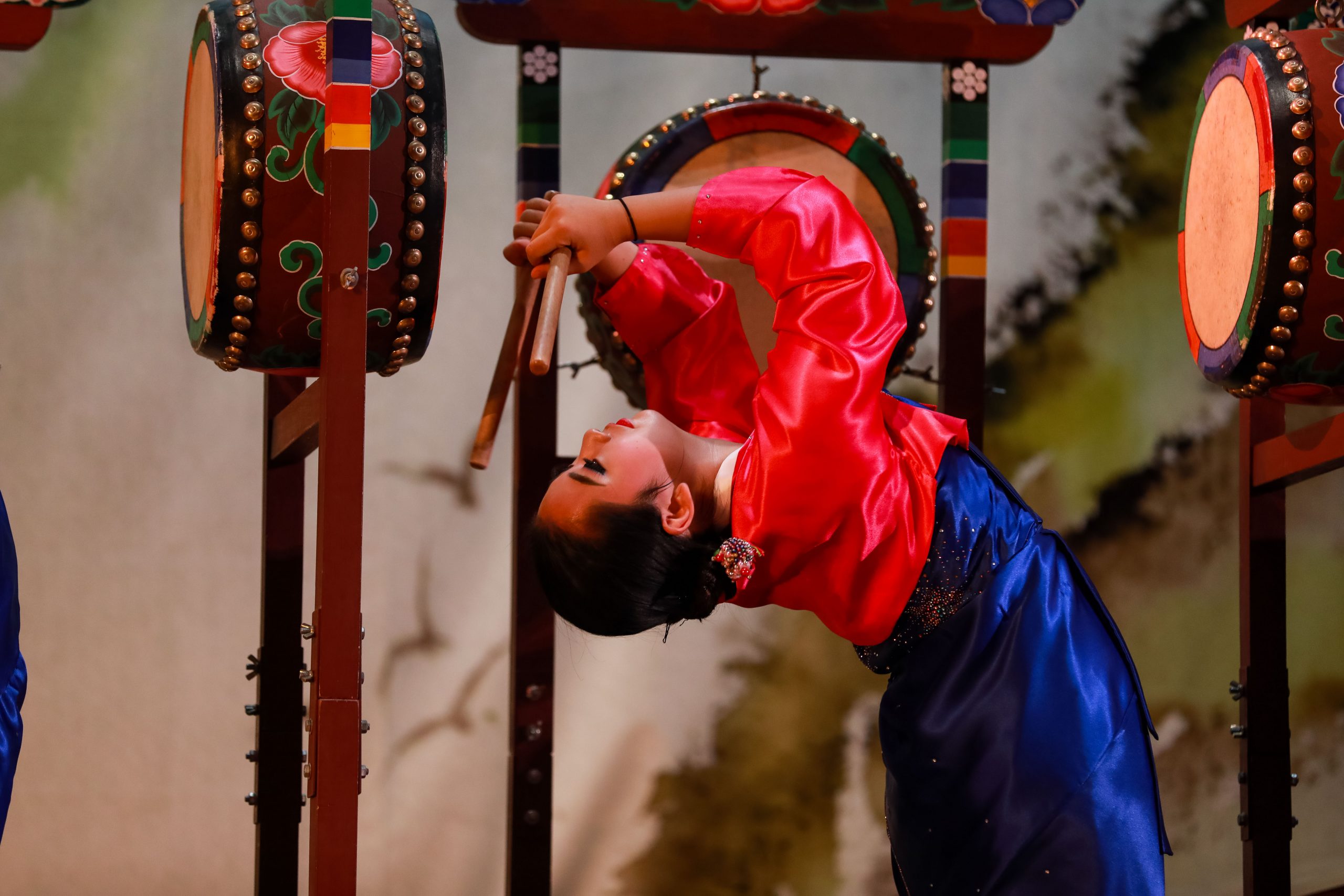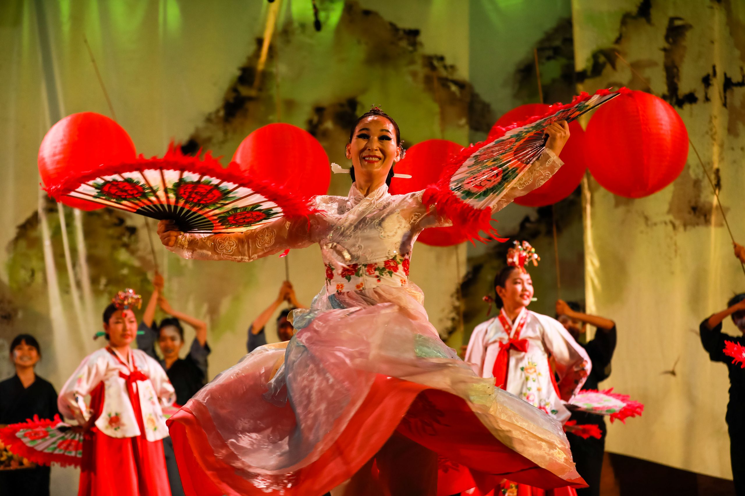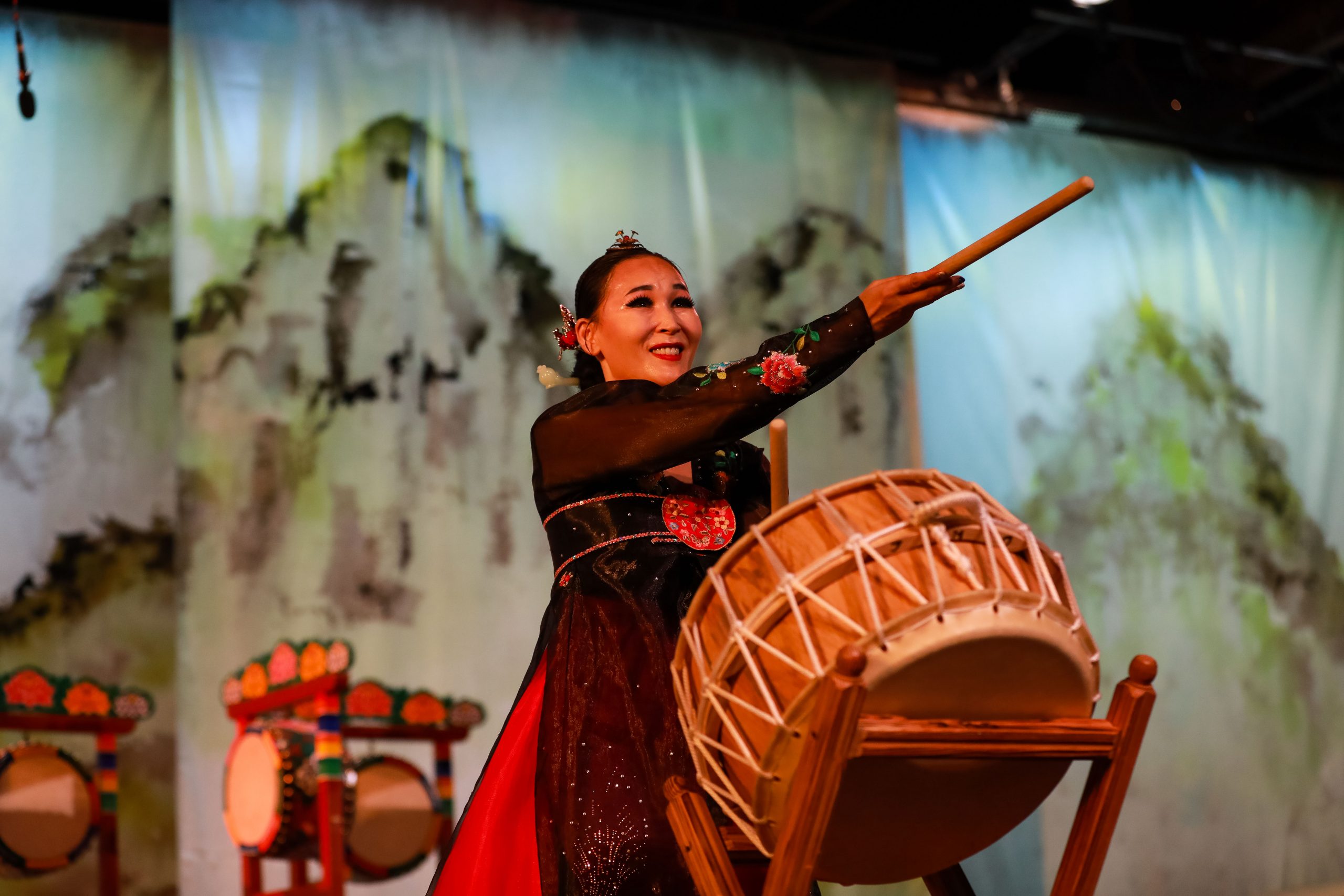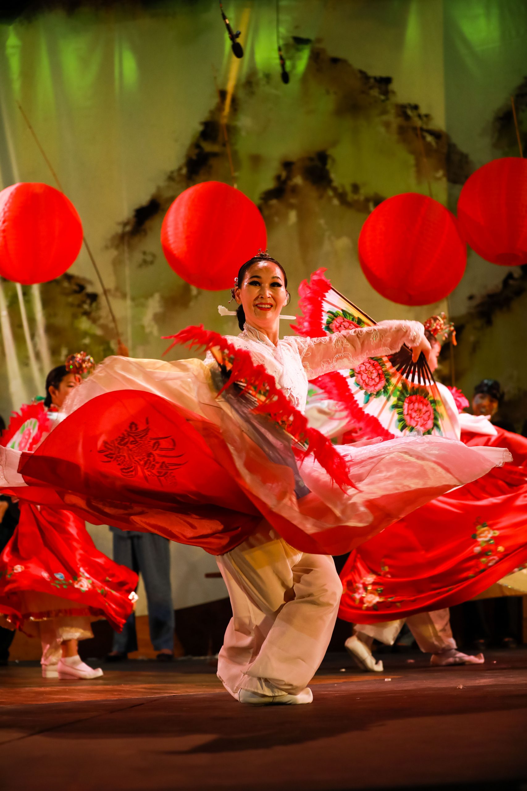 Because of Prospero’s use of sorcery, one might expect an emphasis on magic. Instead, there seems to be an emphasis on the spiritual, with the nigh-on all-powerful spirit Ariel portrayed by numerous dancers. There is also a lot of Asian influence over the infrequent musical performances in the show. When OCR reached out for details regarding the exact culture these sequences were using, we got this as a response, “The director (Peter Uribe) and producer (John Walcutt) wanted a blend of East Asian and Southeast Asian influences to give the island an otherworldly feel without being too specific. While the drumming and dance troupe is Korean, the costumes/makeup/hair of the actors were a blend of Korean, Chinese, Japanese, Vietnamese, etc., influences.” One might think that additions like the Korean drumming show during intermission is unnecessary and a nuisance –after all it is more sitting time in a Shakespeare show –but in reality it draws you in more. The bright colors, vibrant movement, and energetic drumming brings you back to the seats and eager for more island action.