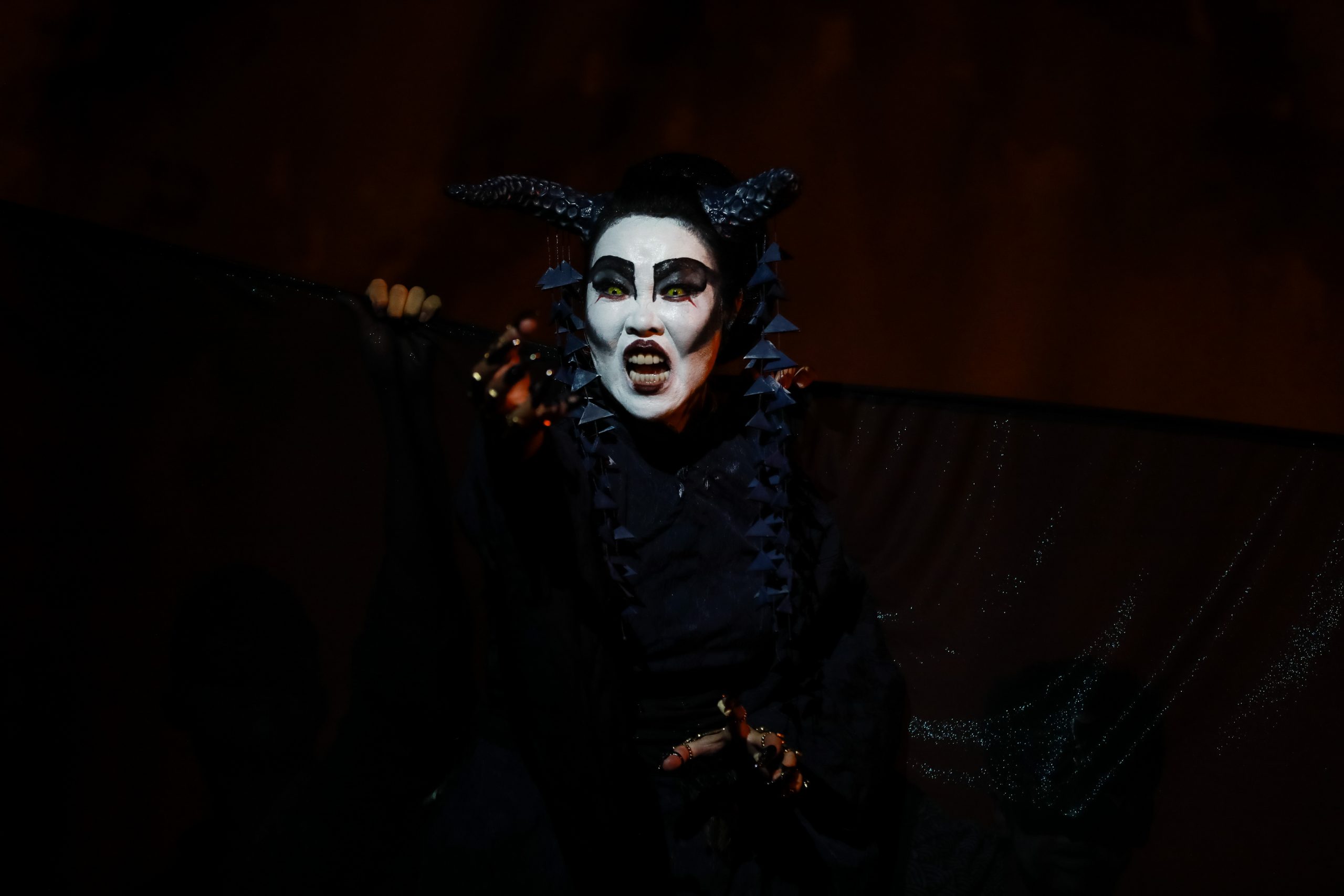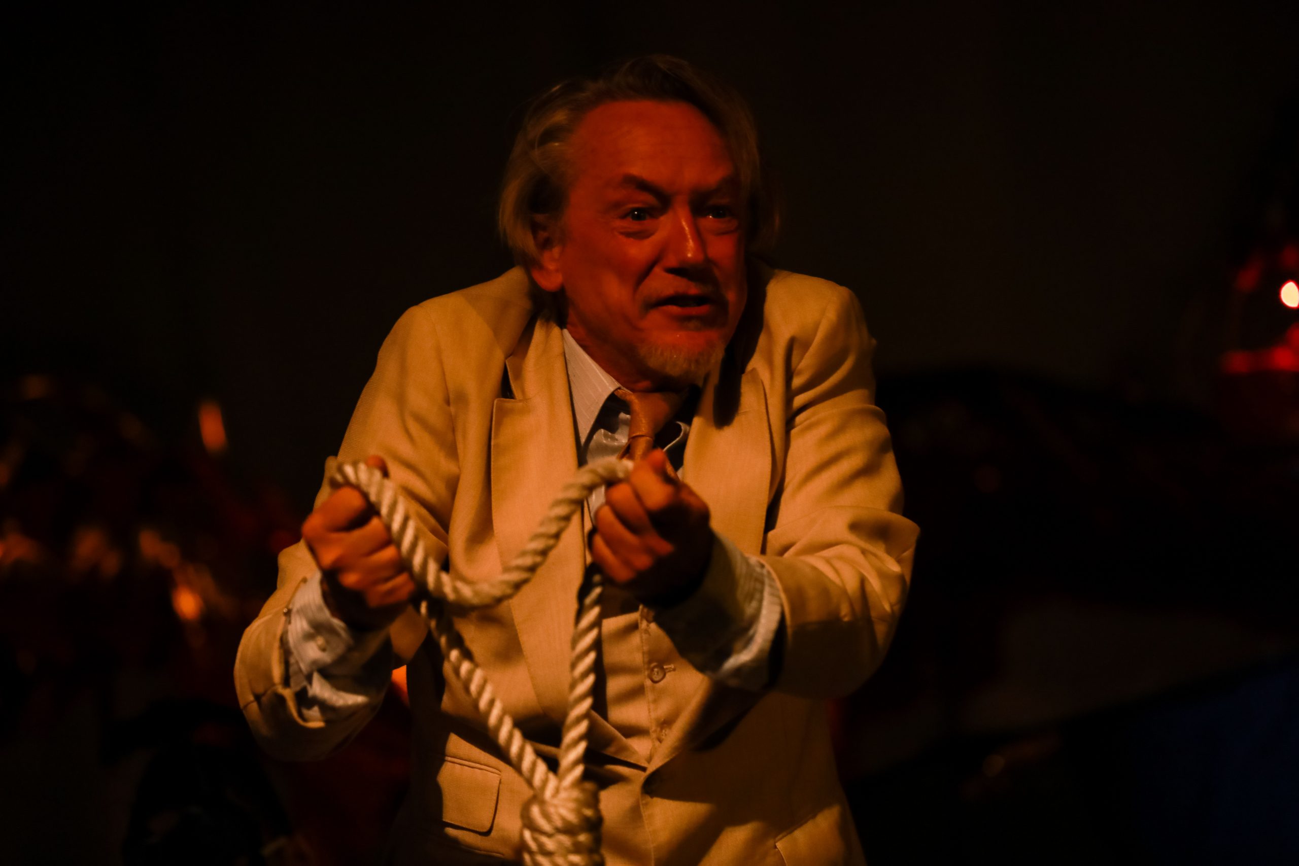 It’s true that the cast is good. It’s true the scenery is nice to look at, especially when certain performers are sliding up and down on it. But what truly sets this production apart from any other is Prospero’s (played by Harry Groener) devoted servant Ariel (played in part by Jay Lee and Daniel Kim). Ariel is a powerful spirit on the island and seemingly has the ability to be everywhere and anywhere at any point in time. His power is demonstrated by having him played by (according to the program) eighteen different performers –capable of either appearing as one speaker or as many different dancers carrying out Prospero’s will across the island. Whether they are causing a tumultuous storm, putting stranded sailors to sleep, or simply sitting and listening in rapt attention to Prospero’s words, the troupe of Ariels is a delight to look at.