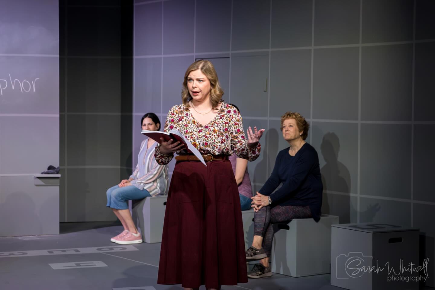 Most, if not all, the actors are on stage for the entire performance, flanking both side walls when not in the scene. They seamlessly enter in, some as multiple characters, and help tell Christopher’s dynamic story. We not only hear the story through Christopher’s words but also see the world through his lens.