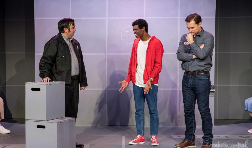 Most, if not all, the actors are on stage for the entire performance, flanking both side walls when not in the scene. They seamlessly enter in, some as multiple characters, and help tell Christopher’s dynamic story. We not only hear the story through Christopher’s words but also see the world through his lens.